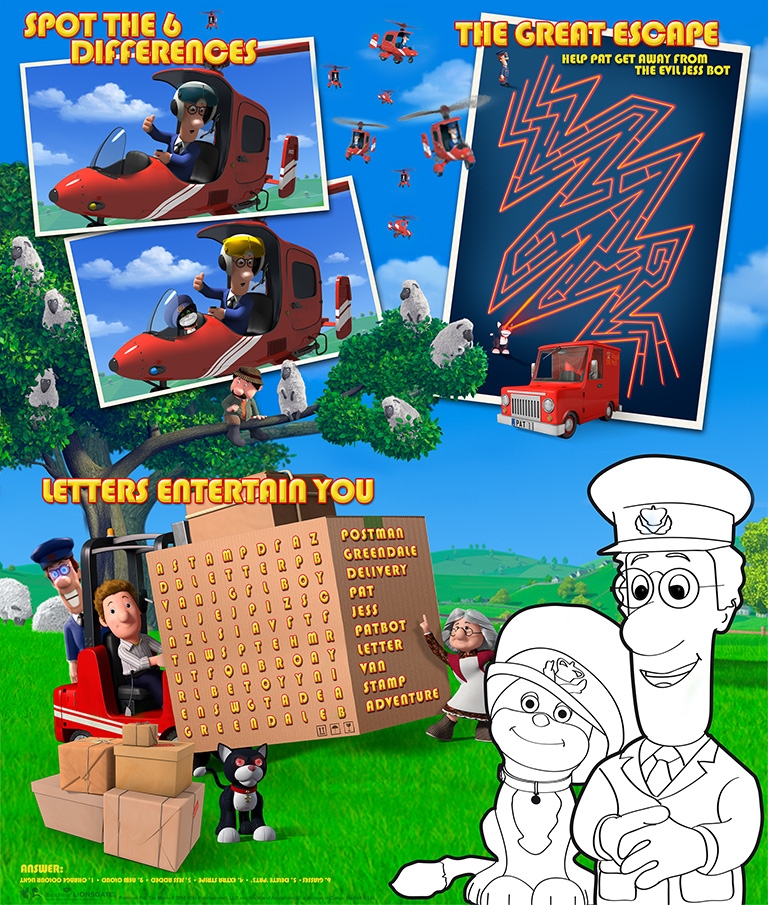 Delivering into cinemas May 23 Downloads Pat Tablet Poster 614KB Jess Tablet Poster 614KB Pat-Bot Tablet Poster 655KB Postman Pat Activity Sheet 1.7MB